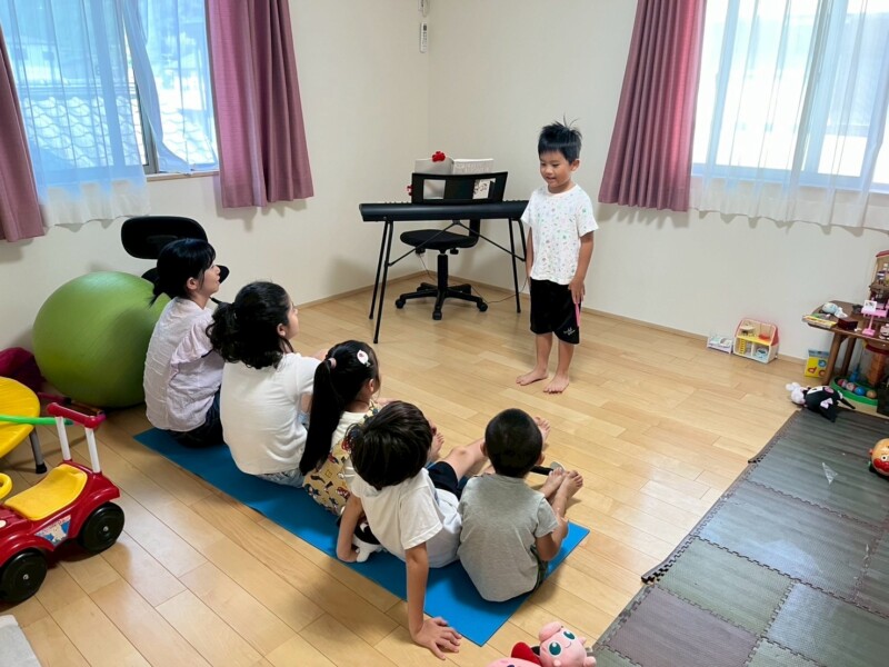 今回はピアノ『ミッキーマウスマーチ』、書道、絵「ミッキー&ミニー」、物語制作がありました。