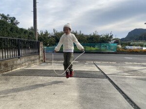 縄跳び練習の課題に取り組んでいます。