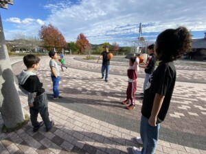 今週のバスケとサッカーは人数が増えて、広範囲でやってみました。