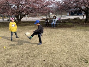 この他にバッティング練習とサッカーのパス練と試合をしました。