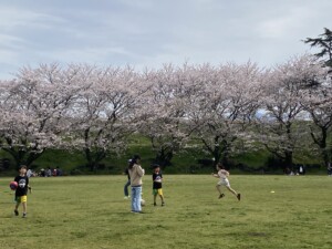 雨の日もありましたが、晴れた日に公園の桜の広場へ!
